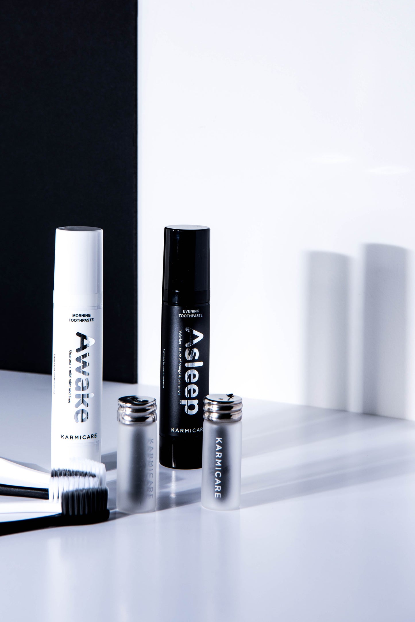 Obtenez le kit d'hygiène complet comprenant le coffret d'hygiène bucco-dentaire biorythmique, la brosse à dents du matin, la brosse à dents du soir et le fil dentaire blanchissant au charbon de bois.